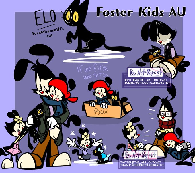 In this AU, Scratchansniff has a cat named Elo. These are some doodles of them I made earlier today. Also don't mind that random Yakko angsty doodle in the corner lol