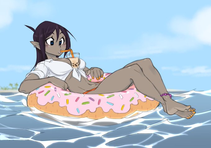 Too hot today!? Cool off with Tara, some boba, & a donut toob, this #cutiesaturday!