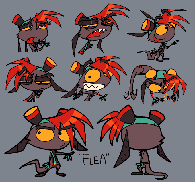 got Shoomy’s design down, now it’s Flea’s turn. This small critter joins in on the tourney in hopes of saving her family, WILL she do it? I dunno, play Arcade Mode and find out