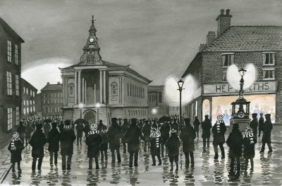 Stylised, atmospheric depictions of Britain's classic football grounds. Celebrating the camaraderie of the evening kick off, the half time pie & hot drink. @ArtKirkham captures a golden era of football, transferring it to watercolour for us all to enjoy! https://t.co/7OuGwExuez