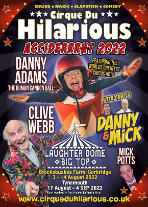 Newcastle Theatre Royal panto LEGENDS Danny Adams, Clive Webb and Mick Potts open their Cirque du Hilarious 'Acciderrrnt!' show at Brocksbushes today!