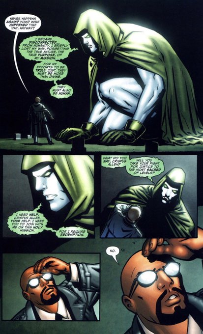@Xecron050 It didn’t last long. I think if it had, they would’ve become more one in the same. In these two pages you see them separately talking, then Aztar goes into him, they’d re still able to talk to each other, but Crispus has become The Spectre at this point.