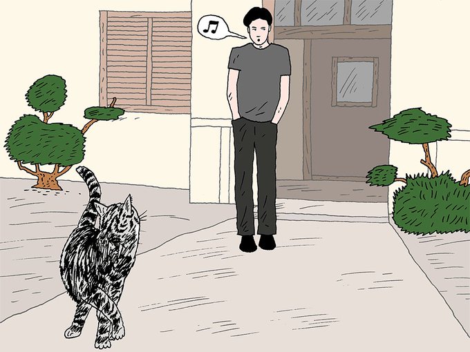 Peter Arkle's (@AllBlackCatsAre) latest illustration and GIF for cat-tastic Japanese publication Asahi Shimbun News for a compelling account of a flummoxed feline, owned by a disturbingly changeable Kabuki actor.