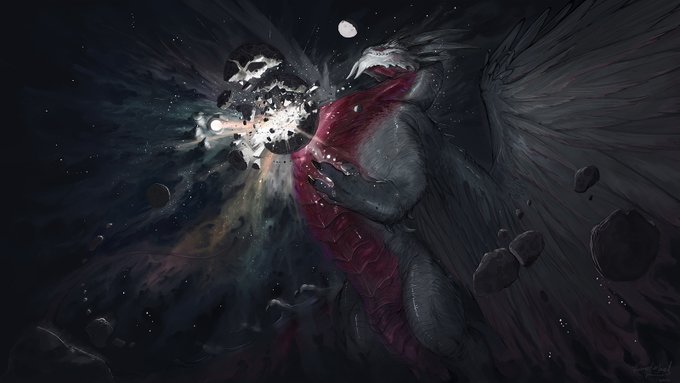 Commission for @IFoxx69 of their space dragon forming celestial objects