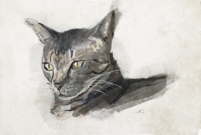 Rorschat, a friend's cat. - L.Pinelli 07/06/2015 #Krita #Artrage #DigitalArt #Cats #Watercolor