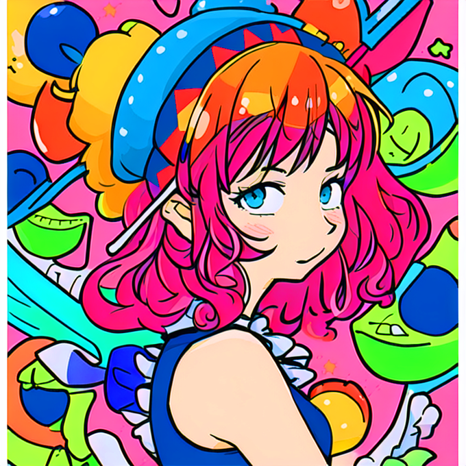 あれこれパラメータを変えても髪色がプロンプト通りにならないので、Photoshopで色調補正してインナーカラーってことにしたw