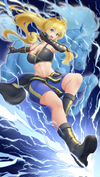 すけぶで描いてもらったOCのゼニア、腹筋とへその描写がよすぎ 前衛タイプの子には腹筋しっかりしてて欲しい思いがあります よくない?????