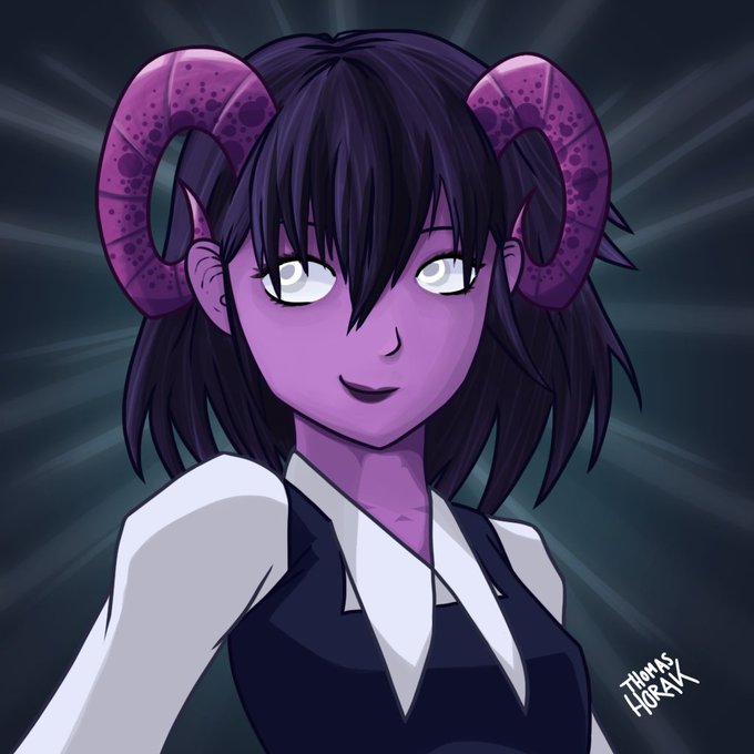 @EmmacityArt @roppi_poppy @aceroguezintiel Akantha, known to most as Strong Kas, the warlock fighter who's always down for a drink and has no time for your nonsense, Georgia's PC!