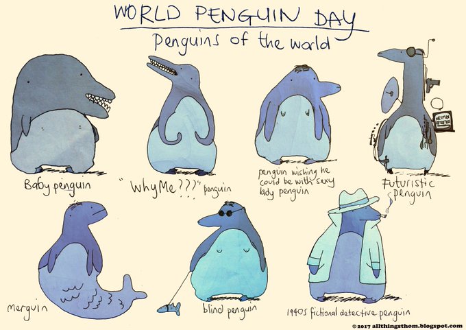 #AllThingsThom #PenguinDay #Penguins #comics #dailydoodle Did you know it was #WorldPenguinDay Here are some penguins from around the worlds