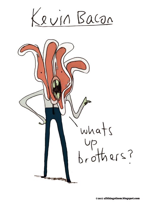 #AllThingsThom #KEVIN #Bacon #KevinBacon #Celebrities #lovecomics #comics #dailydoodle #illustration #art Everyone loves a slice of Bacon...