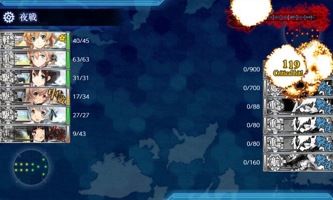 ハァーンE1終わった…。まさか初っ端からてこずるとは思わなかったわ、バケツ既に50個消えたで…。 支援艦隊と火力大事だね!(北上様を3人育てておいて大正解でした)
