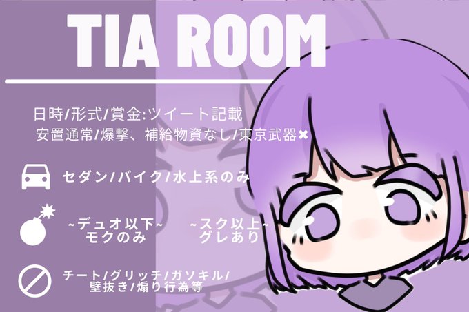 @783uu リプ失礼します🌷 画像(切り取りやすいイラスト) ルーム名 英語のみ ↳Tia Room 好きな色(白以外おまかせあり) ↳紫 車両 ↳セダン・水上系 投げ物 ↳QT↑ぐれもく その他もくのみ 遅くなってしまいましたがご検討いただけると嬉しいです🥺 よろしくお願いします😖❣️