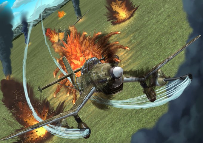 シャーペンで紙に描いた絵をスキャンして色を塗るやり方は、全てデジタルでやるより早くかけたりする。兵器をしっかり描き込む場合には適さないかも。