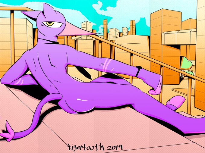 Recently met up with my old friend Gallil! He 3-D modeled my character a while back, so I was super down to collab on a couple of illustrations with it. Check out his e621 it's pretty cool: https://t.co/7PL7aSZruX