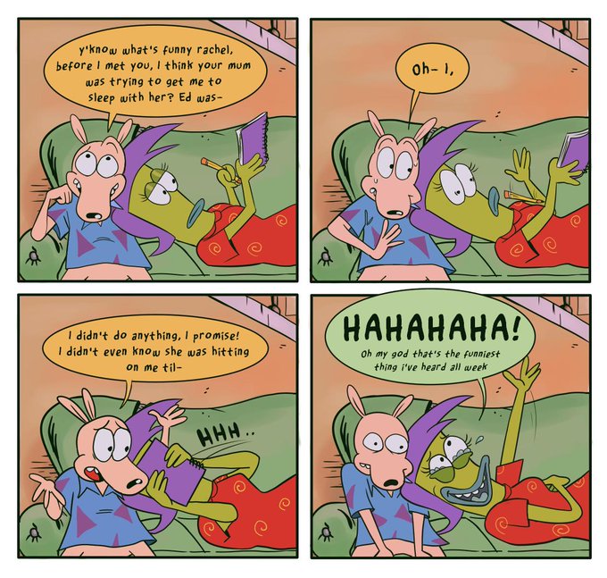 People keep mentioning the episode where Mrs. Bighead flirts with Rocko and I just imagine this is how that conversation goes down #RockosModernLife