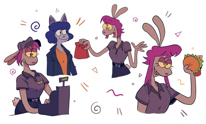 Maz (The rabbit I drew before) works at a fast food restaurant and hates it! (Ft. @em_doods character !)