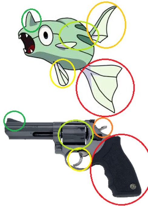 Watching the Pokemon Anime, I've always wondered why the hell a fish would turn into an octopus, NEVER understood this evolution, so I finally looked into it and apparently it's a gun into a turret (or possibly a tank).
