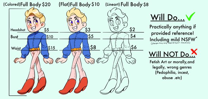 Heres my commission sheet and link to some of my works