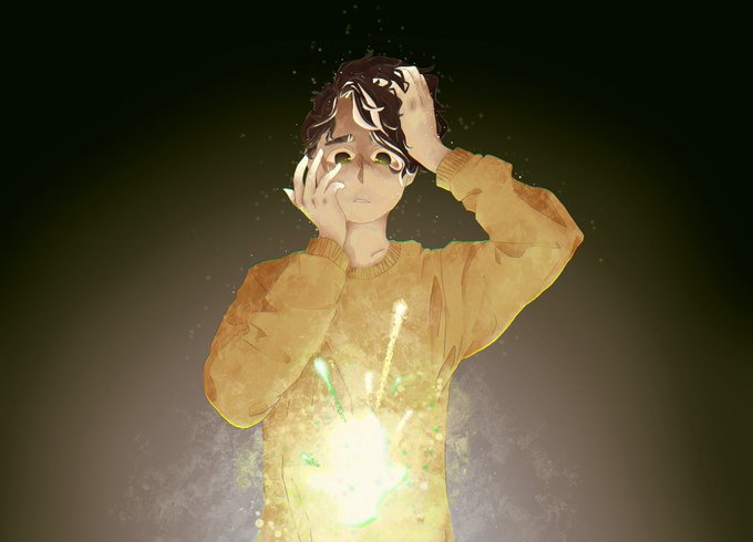 @Etherea43735137 Blueish skin, white eyes, I also really love the idea of him constantly having a glitch effect to his body (I definitely need to draw him more) :]