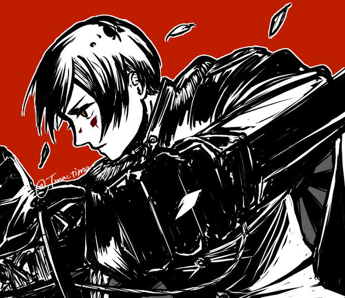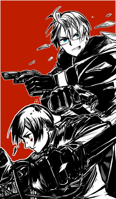 暇すぎて1月に描いた菊爺の絵にめりか氏を増やした!強くなった! ※若干の流血表現あります!!