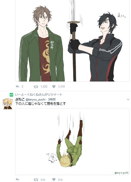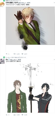 私のTL。 料理下手なイリリスさん。真っ黒なスコーンを落としたため、下に居た料理上手な燭台切光忠により重症。