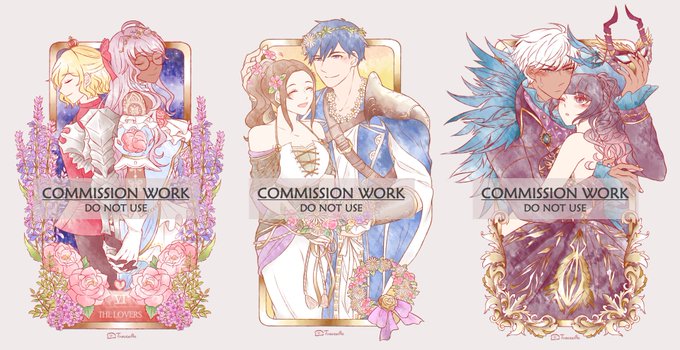 Recently approved comm batch of pastel couple tarots with lots of flowers and filigrees! 💐💐