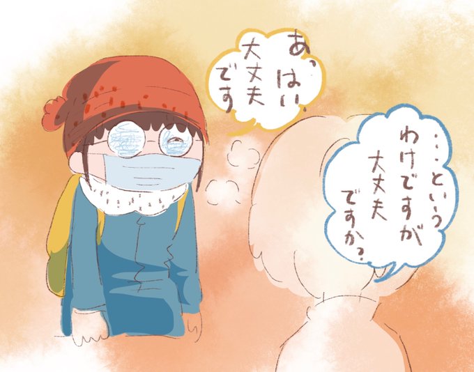 これは、外から室内に入ったらメガネが曇って真っ白になってしまい、目だけを笑顔にすることでなんとかフォローしようとしている私の絵です。