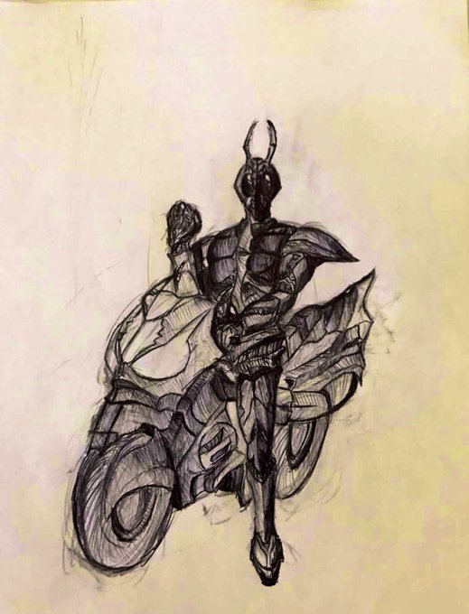 @kuroviel ((I’m a bit late, apologies)) The main three characters of EKON: The Masked Rider ((Ekon, Vident, and the Bishop + Ekon with his Bike, Traytorus!))