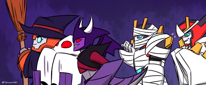悪魔の仮装したダイブボムと他マイクロン達 #TF版深夜のカオスお絵描き60分一本勝負