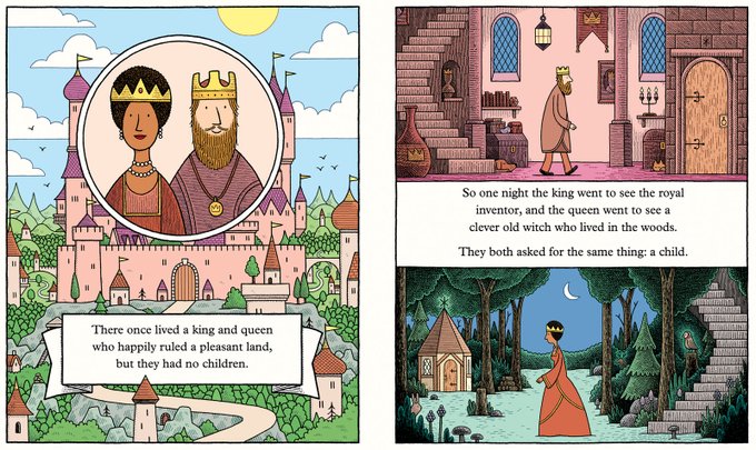 The opening spread from my picture book ‘The Little Wooden Robot and the Log Princess’. It'll be out in a little over a month. More pictures and preorder links are here: https://t.co/WurcVnNrxj