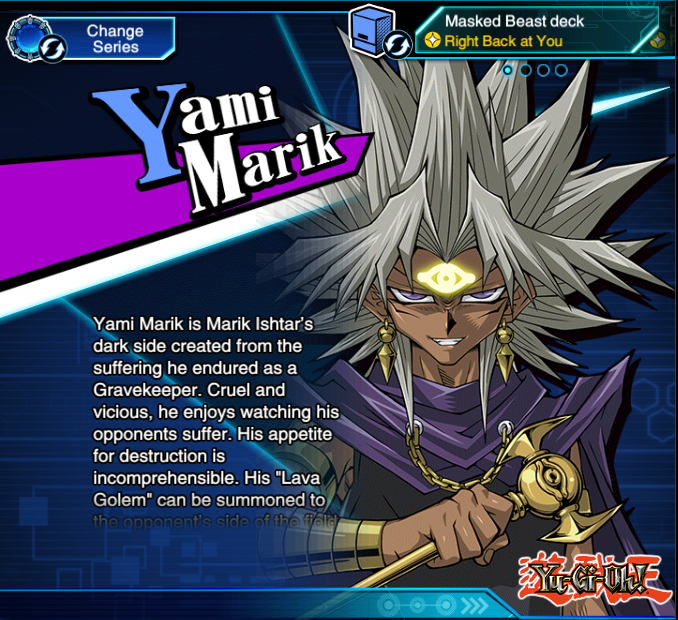 @YuGiOhCardEU My goto for YuGiOh as a whole nowadays? Yami Marik. The man showed us years ago just how scary the Egyptian God card Ra could be in the show and years ater, in the TCG. I can only hope we see some of that support in Duel Links...