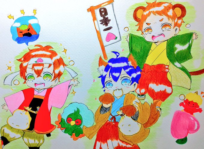 ただいま…童話シリーズ無音🍑太郎リメイク中… (去年の9月に描いた絵)