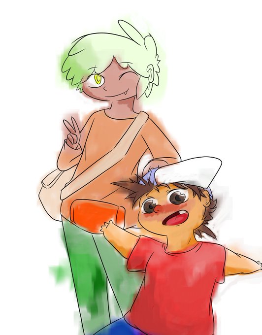 Un fanart de uno de los personajes que más me ha gustado de @PokeiviGamer con mi personaje dibujado por mi favorito,pa ti :3 (no es que haya usado un pincel al azar para darle un toque "artístico" en vez de colorearlo normal porque no me sale, que va que va.