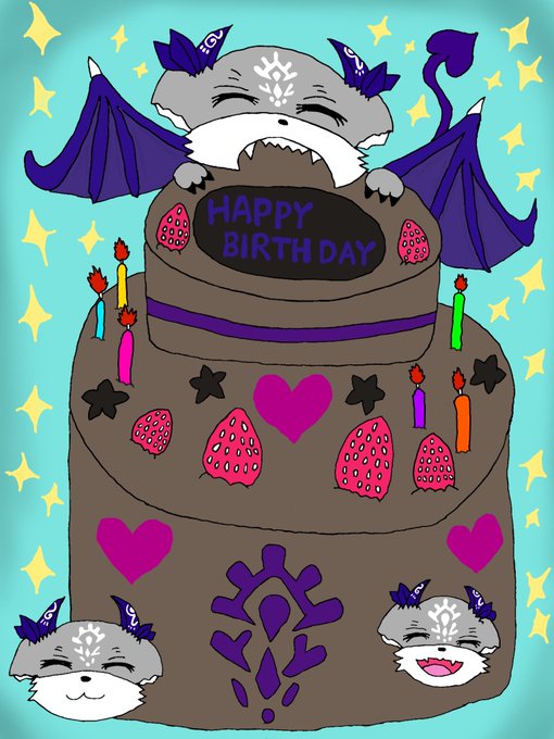 でび様にケーキを贈ります🎂 下のでび様はクッキーで1番上のでび様はご本人様で浮きながらケーキにかじりつくでび様です😊 でび様用デカいケーキです✨ #でびる様発生祭崇拝写真