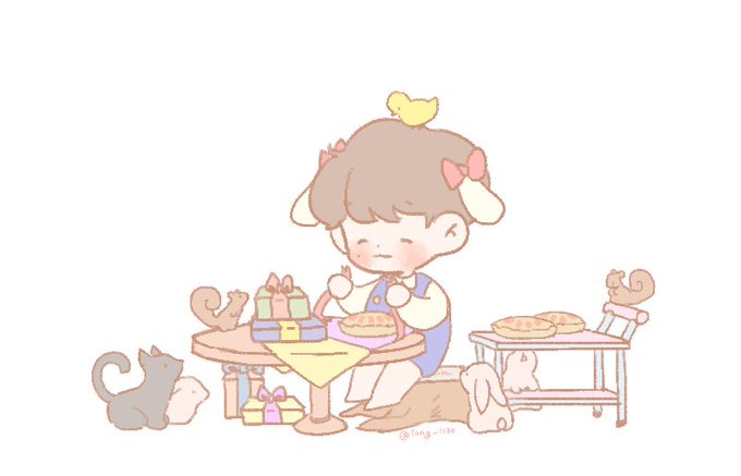 작은 오두막에서 동물친구들을 위해 애플파이를 포장하는 형준이💕