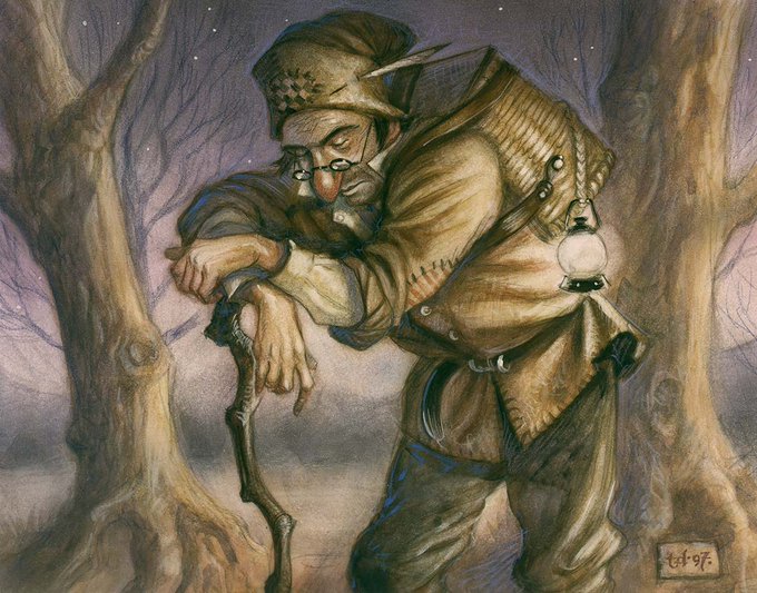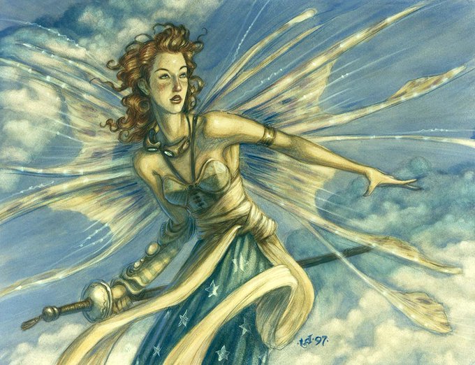 While organizing old files I discovered a stash of archival photos taken in the 90s while living in NYC, including #MagicTheGathering art that has long been sold. Of interest is the original image of "Noble Benefactor", which included Sisay (as seen on "Mischievous Poltergeist").