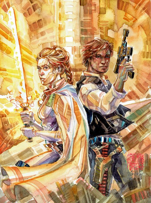 Am I the only one that wishes #leia had the opportunity to hold a #lightsaber? One can only dream. So I painted this. Enjoy! #StarWars #TheLastJedi #watercolor #HanSolo #art #painting #EpisodeVIII
