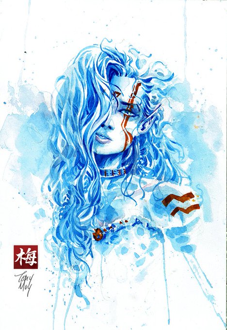 Azurian #Elf painted during today's #Twitch #livestream. #watercolor #fantasy #art #painting #twitchcreative
