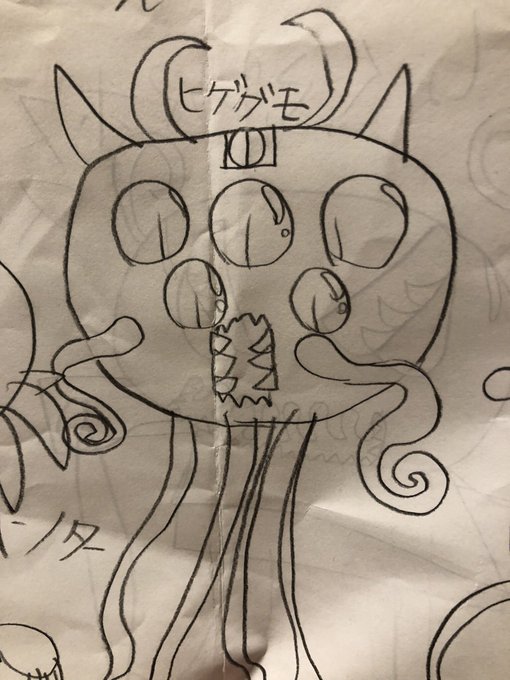 ホラーゲームのキャラが好きみたいで、オリジナルキャラも考案してよく描いてます。なんか目を増やしたがりますね。怖い!