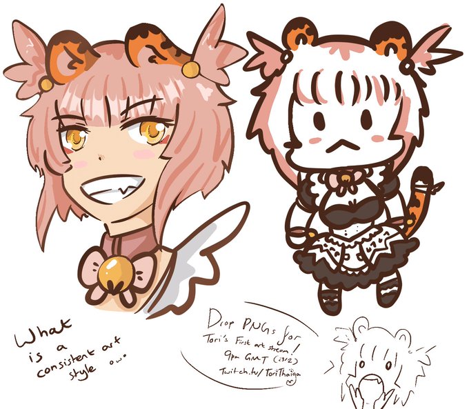 Tomorrow (Tue) she will be doing her first drawing stream to test if her iPad will combust being streamed 🐯 So drop your pngs! With your favourite food and Tori might draw gao!