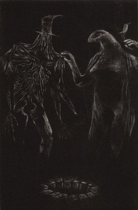 どれも個人サイトの掲載すらしなくなった超古いやつら 前半2つはシャーペン+フォトショで彩色、三枚目は銅版画の一版多色刷り(かなり初期)、最後はフルデジタル(ペインター)
