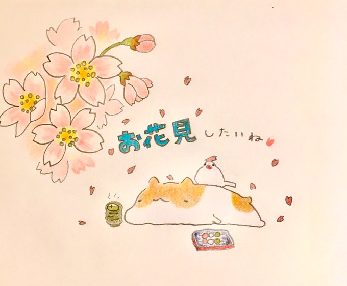 お花見したいね①~ことりさんと編~#とろはむ #桜🌸 #ハムスターがいる生活 #イラスト好きさんと繋がりたい #文鳥かわいい