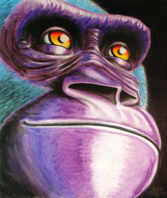 質問頂き過去を話す機会がありました。振り返るのは案外悪くない。当時は人ばかり描いてて頭の中のイメージを紙の上に表現するのに苦労していた。あるキッカケで長年しまい込んでたワックスパステルを使い衝動的に短時間で描いた #猫 。何かがパァッと開けた。この絵が今の方向性の元になっています。