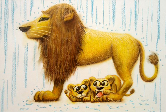 横浜で開催した放送開始50周年記念"アートオブ ウルトラセブン展"に円谷プロの審査を通過-出展した実験的作品です。もしもライオンが...と想定して描くのは楽しかった✨子供達にウケた😆背景のカラフルな宇宙は生頼範義先生リスペクトです。 #絵柄が好みって人にフォローされたい #アート