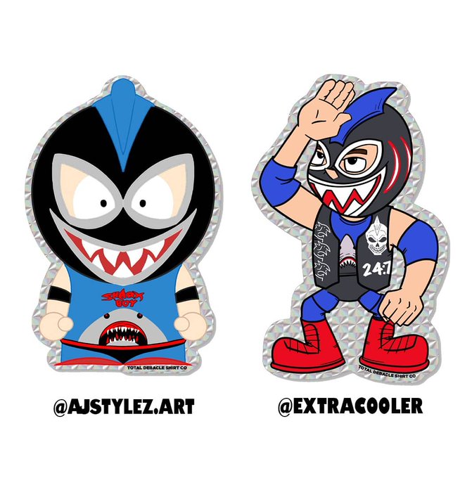 1st edition Shark bite blue @SharkBoy24_7(signed & unsigned) and red hot Curry Man. Available to order April 3rd. Shipping week of the 20th. Stickers : @ajstylez_art & @ExtraCooler