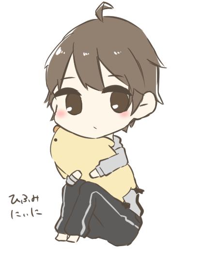 みてみて! にゃぎーが(@KitashiroNagisa)描いてくれた! 母上ぬいぐるみ抱っこする十時一二三だよ! 可愛いね!