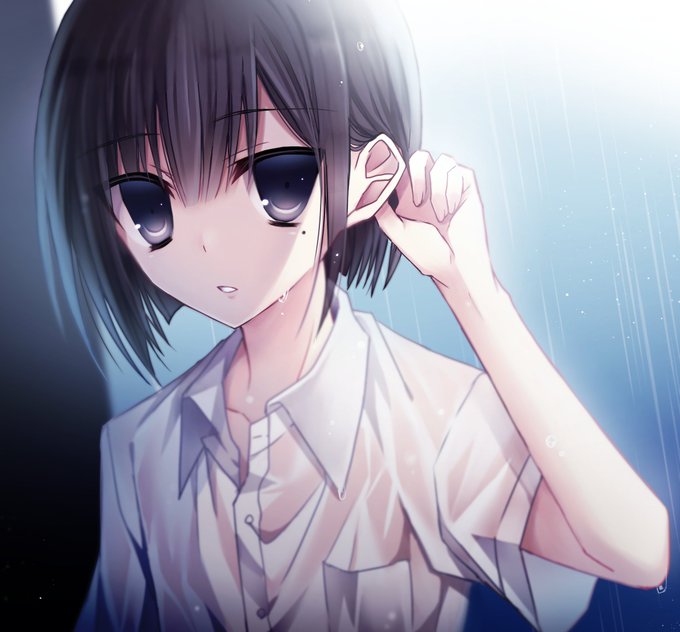 雨に降られた男の子