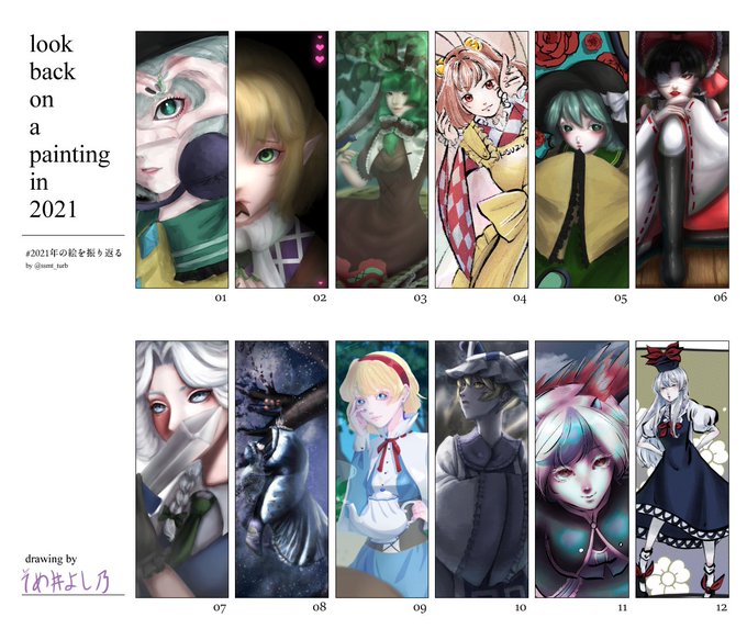 #独学でここまで成長したからお前も頑張れ 一年間の絵をまとめたやつだから見にくいかもだけど2年もあったらここまで変わる 2020→2021→2022