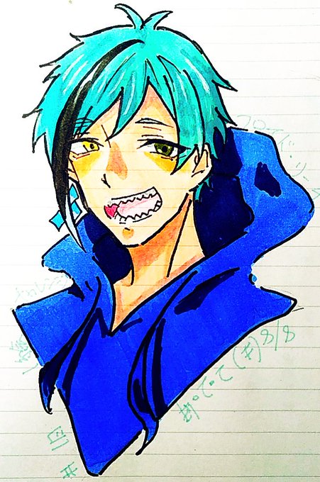 またまた、 #twst の🦈クン描きました😊とりあえず、明日もキャラクターにパーカー着せたいと思います😊😊😊(因みに画材は今日Amazonから届いたイラストマーカーとそれについてきた水彩のペンを使いました。) #ツイステファンアート #ツイステ絵描きさんと繋がりたい #ツイステ