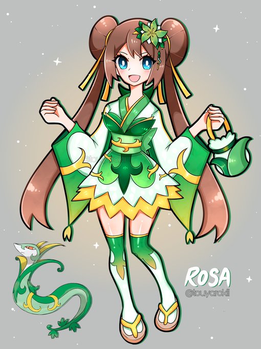 Here’s my art of Rosa wearing a Serperior-inspired kimono ✨🍃 #pokemon